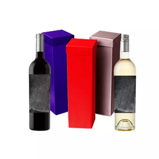Select from luxury-style packaging boxes with magnetic closures, embossed wine carriers with a handle, or suitable folding bottle packaging with a lid and base.